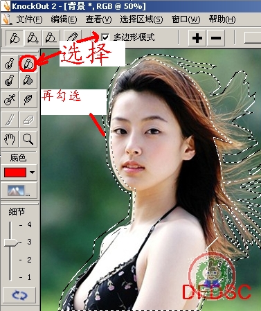 写到这里,发现KNOCKOUT2抠图虽然简单实用,但图中的一些细节却抠不出,比如飘逸的头发丝---这点,大家要注意了