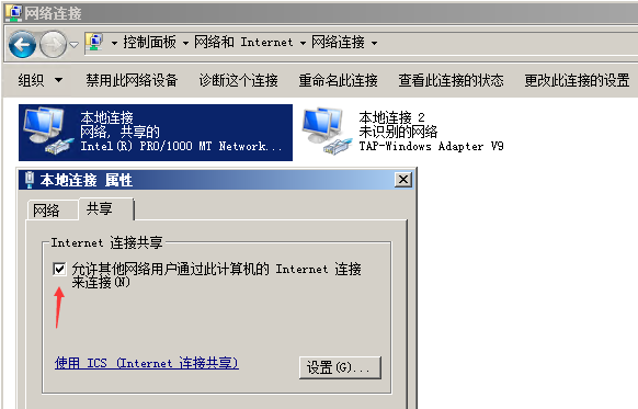 安装完成后系统会多出一张网卡TAP的 “本地连接2