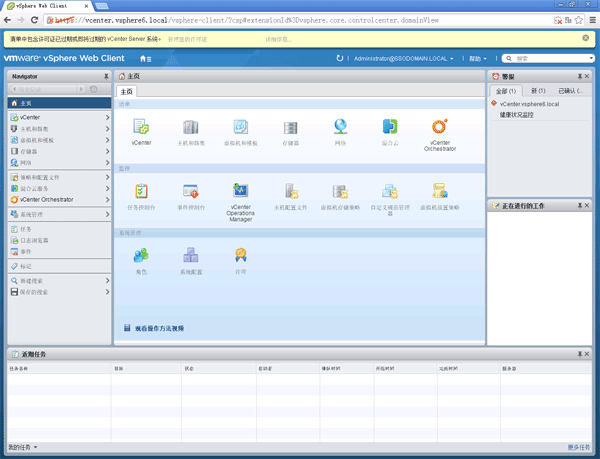 管理主界面,上面的黄字是提示没有vCenter序列号
