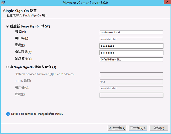 输入SSO域:ssodomain.local,输入密码,记住,一会登陆web client时会用到。